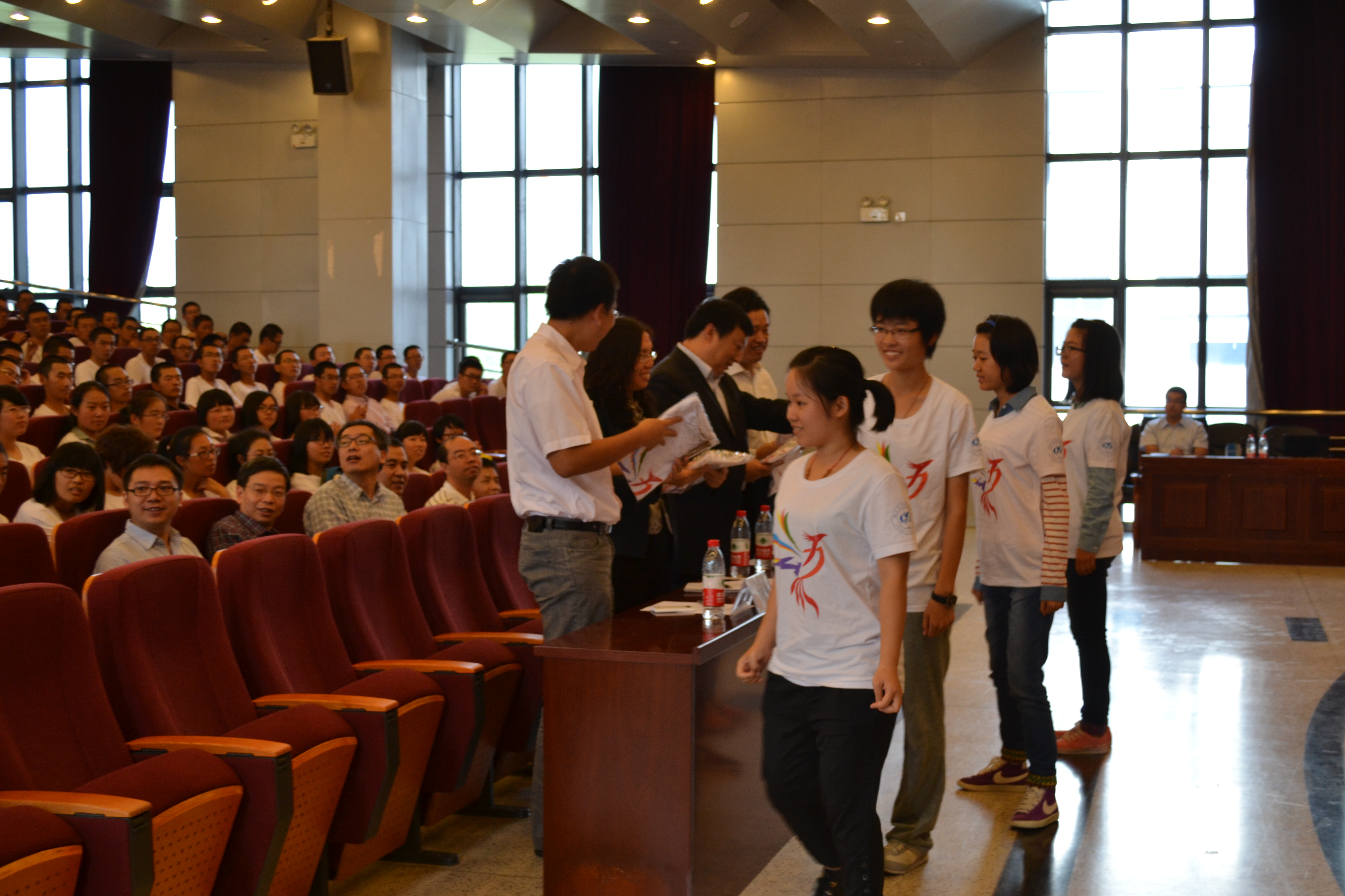 2014级新生代表杨哲夫和2013级老生代表李健坤上台发言,杨哲夫同学在发言中展现了四系2014级新生的风采和朝气,李健坤同学则从一名大二学生的角度和新生们分享了学习经验,并对所有新生的到来表示欢迎。
