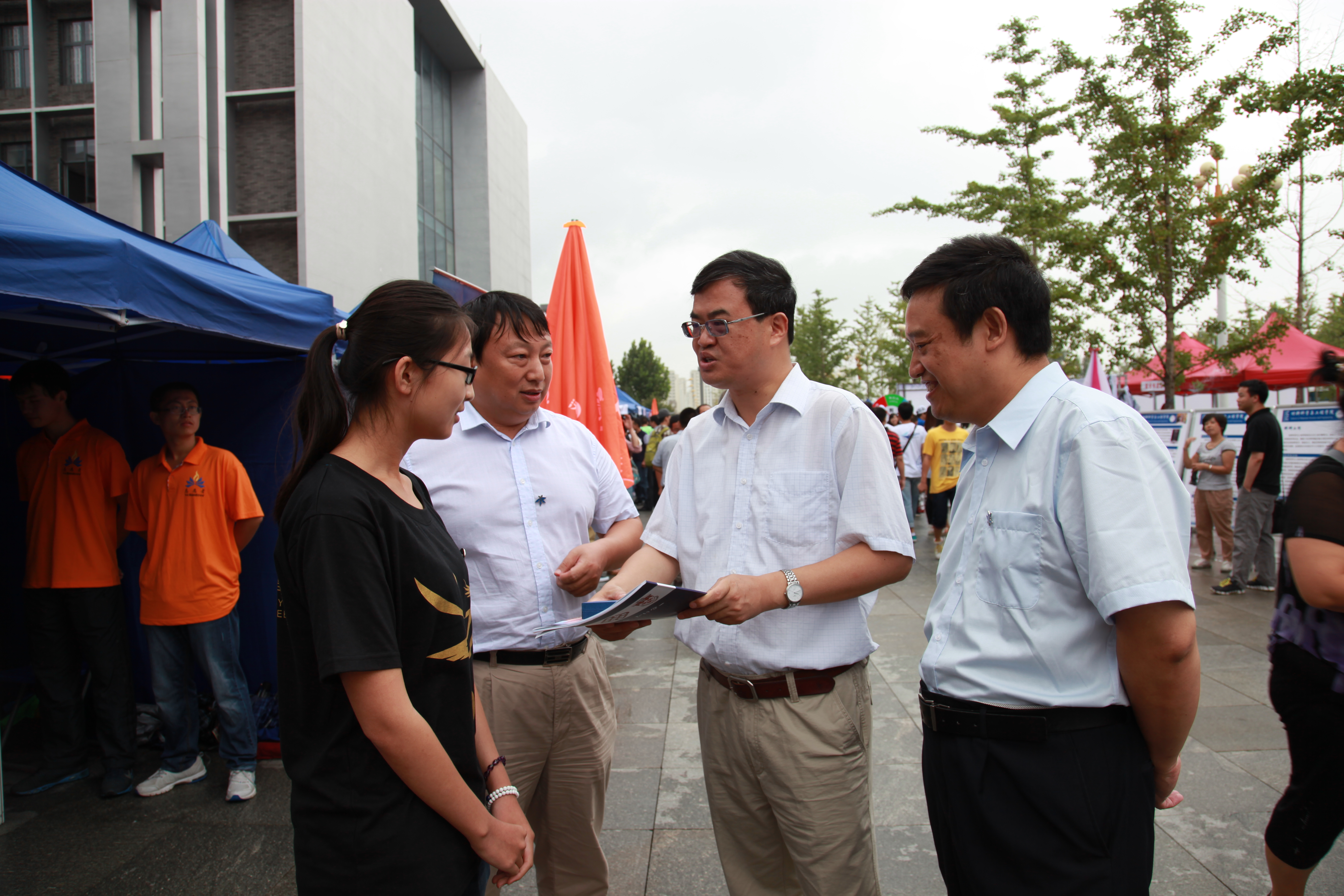 的迎新报到处,看望新生和迎新工作人员。我院的迎新志愿者向校领导介绍了我院迎新工作的进展情况、我院院徽、吴大观英才班班徽、学院暑期国际交流工作情况和学生自主设计的迎新文化衫。校领导在听取志愿者介绍后,肯定了我院的迎新工作,并向志愿者们表示了慰问,向新生询问了选择试点学院的理由,希望新生百尺竿头,更进一步,在大学阶段努力学习,全面发展,做一个“德才兼备,知行合一”的人。