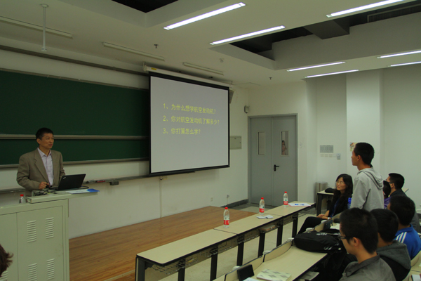 党委副书记李建伟老师、专职辅导员曾煜、2014级辅导员段浩宇、杨乾以及2014级吴大观班36名学生。见面会上同学们认真听讲,仔细思考,甘院士讲述了从个人的学习生活到未来航空发动机行业发展方面自己的经验与看法,会场气氛非常融洽,此次班会取得了圆满成功。