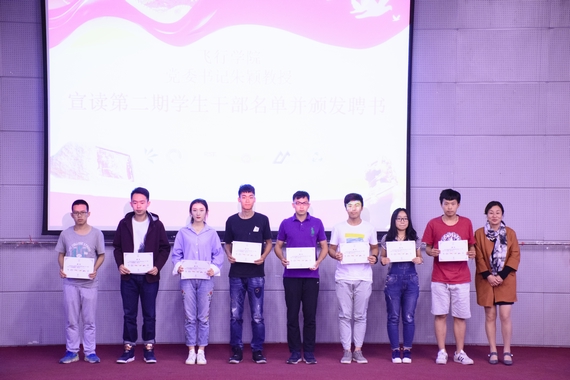 党委书记王强宣读了第一期学生党校的优秀学员名单并为优秀学员代表颁发证书。随后飞行学院党委书记朱颖教授宣读了第二期学生党校学生干部名单并为学生干部们颁发聘书。接下来王雨晴同学作为第一期党校优秀学员代表发言,回顾了一学期党校学习的心得和收获;王科翔同学作为第二期学生党校学员代表上台发言,他希望通过本次学习,党性修养得到提高,共同做思想政治素养高,文化知识学得好的优秀大学生;何任之同学作为第二期学生党校学生干部代表发言,并做出承诺,将为领航党建工作坊的建设及发展和优秀入党积极分子的培养做出不懈努力。最后国产成人在线