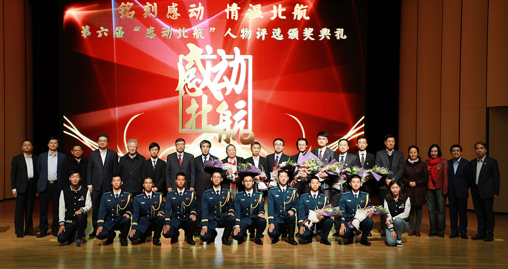 典礼进入颁奖环节, 本届10位“感动北航”获奖人物和团队一一揭晓。他们那温暖而震撼心灵的故事依次以记录短片的形式展现在观众面前,在场师生共同分享了他们精神的坚守、梦想的追寻、奉献的收获。他们是——“只道寻常 无声处听凯歌”——在高温结构材料的研制领域默默耕耘,填补了我国在叶片热障涂层技术领域的空白的宫声凯教授;“探奥传动,融万变惟至简”——使我国拥有了世界领先的汽车自动变速器生产技术,为我国培育了一条自主的自动变速器产业链的徐向阳教授;“躬耕不辍,殚精力育桃李”——从事航空发动机事业五十余载,一片丹心诠释航空报国之志的陈光教授;“寒来暑往,坚守呵护成长”——从沙河校区筹建至今已有8年时间,在平凡的岗位上默默守护沙航教学运行的李光老师;“铁肩担义,恒心立 苦行成”——身披空军蓝色戎装,胸怀北航大爱精神,在全国和首都高校比赛中双双夺冠,谱写十年辉煌、十载荣光的北航国旗护卫队;“成风化人,春雨润物无声”——潜心治学、恪尽职守,助力学生党员成长,备受学生爱戴,在教学之路上不知疲倦、砥砺前行的高宁副教授;“一心为民,爱如渊德树人”——可靠性试验领域的知名专家,潜心治学数十载,久卧病榻仍不忘传道授业的李传日教授;“博学慎行,勇攀科研高峰”——潜心钻研,实现了中国机械工程学在《nature》上发表论文零突破的张鹏飞博士;“鹰击苍穹,逐梦万丈长空”——带着火热的飞行梦,突破重重阻碍,为我国航空试飞领域做出杰出贡献的试飞英雄徐勇凌校友;“小城大学,共谱脱贫新篇”——来自五湖四海,把定点扶贫的论文写到吕梁大地上的中阳精准扶贫团队。