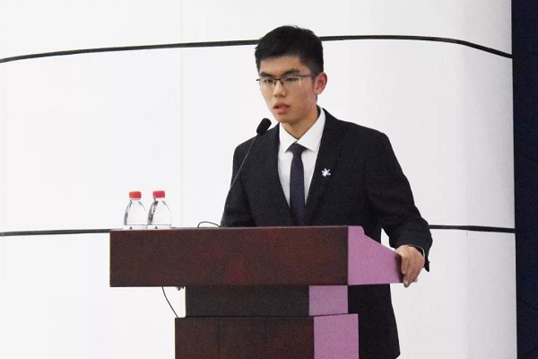 2017级学生代表于豪代表2017级全体学生向全体教师表示由衷的感谢,他说大学生活就像长跑,无论坎坷或是平坦,同学都要努力奋斗,用汗水浇灌梦想;作为当代北航学子,要不忘初心、牢记使命、不畏艰难、勇于创新,通过自己的努力一步步接近空天报国的远大理想,承担身为当代青少年的历史使命和时代责任。