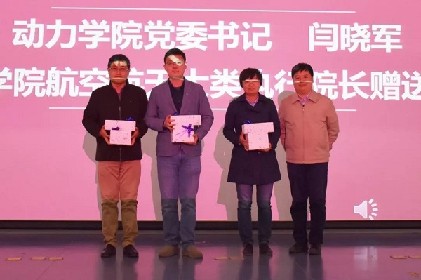 闫晓军书记向北航学院航空航天大类执行院长赠送了友谊纪念品。