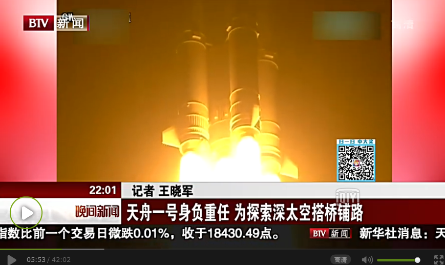 编者按:2017年4月20日19时41分,天舟一号货运飞船经由长征七号遥二运载火箭托举,成功进入太空。约596秒后,飞船与火箭分离,进入预定轨道,标志着此次发射取得圆满成功。北京电视台2017年4月20日的《晚间新闻》报道了天舟一号的发射情况,其中以《天舟一号身负重任 为探索深太空搭桥铺路》为题深度报道了北航人在天舟一号的研制与发射过重所做的贡献,并采访了我校国产成人在线