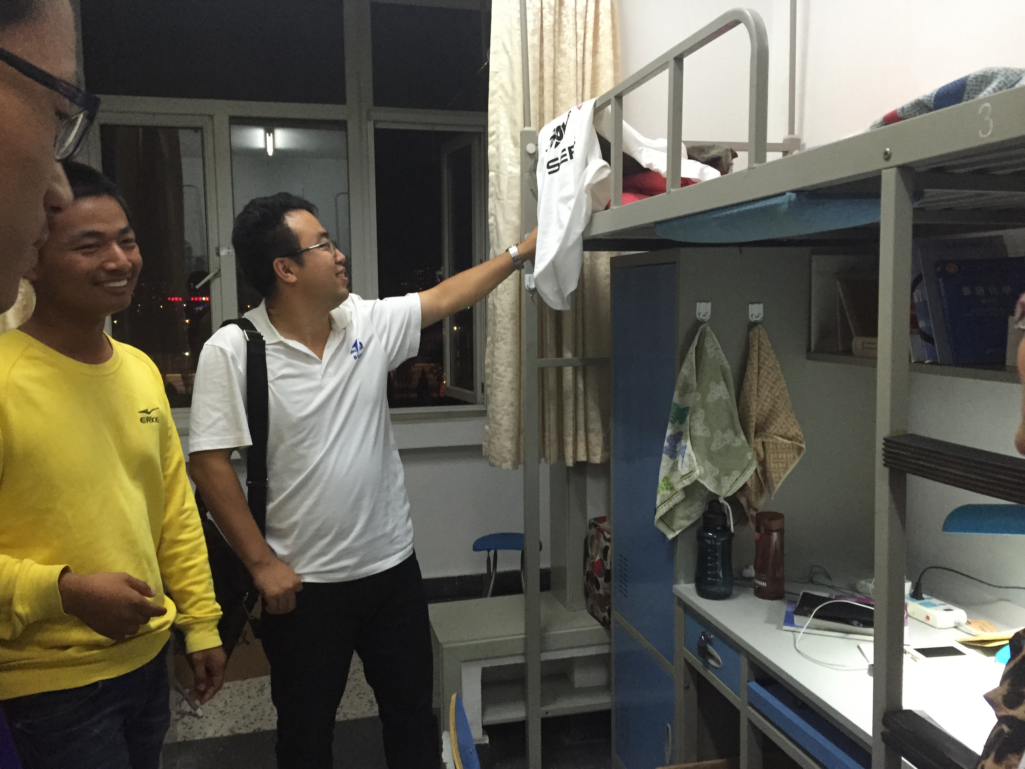 丁水汀院长、王强书记到沙河校区走访宿舍看望2015级新生,并发放中秋慰问品。