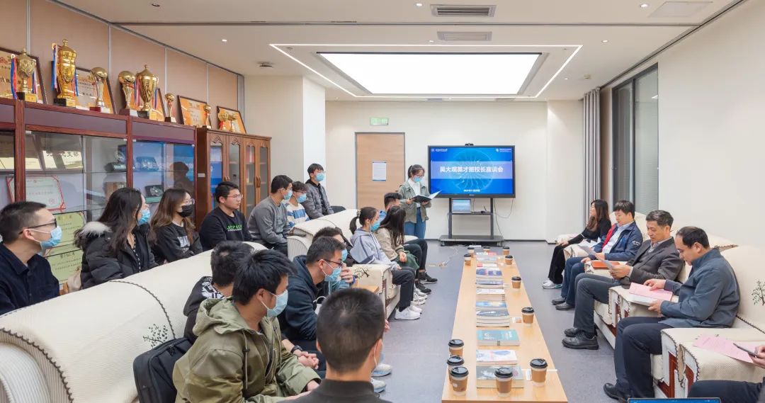 徐校长和同学们进行了亲切的交流,他十分关心同学们的学习生活,鼓励同学们对学校各方面工作提出自己的看法和建议。徐校长询问了学业导师、学术导师、企业导师配备情况和实际效果,提出要切实梳理好三种导师的关系,对同学们提供个性化的指导和帮助;提出学院要拿出更多切实有效的办法做好大一学生的专业引导工作;了解了科研课堂的试点情况,提出要进一步完善全过程管理,确保质量。徐校长还针对同学们提出的课程设置、校区建设等方面的问题,提出了意见和建议。