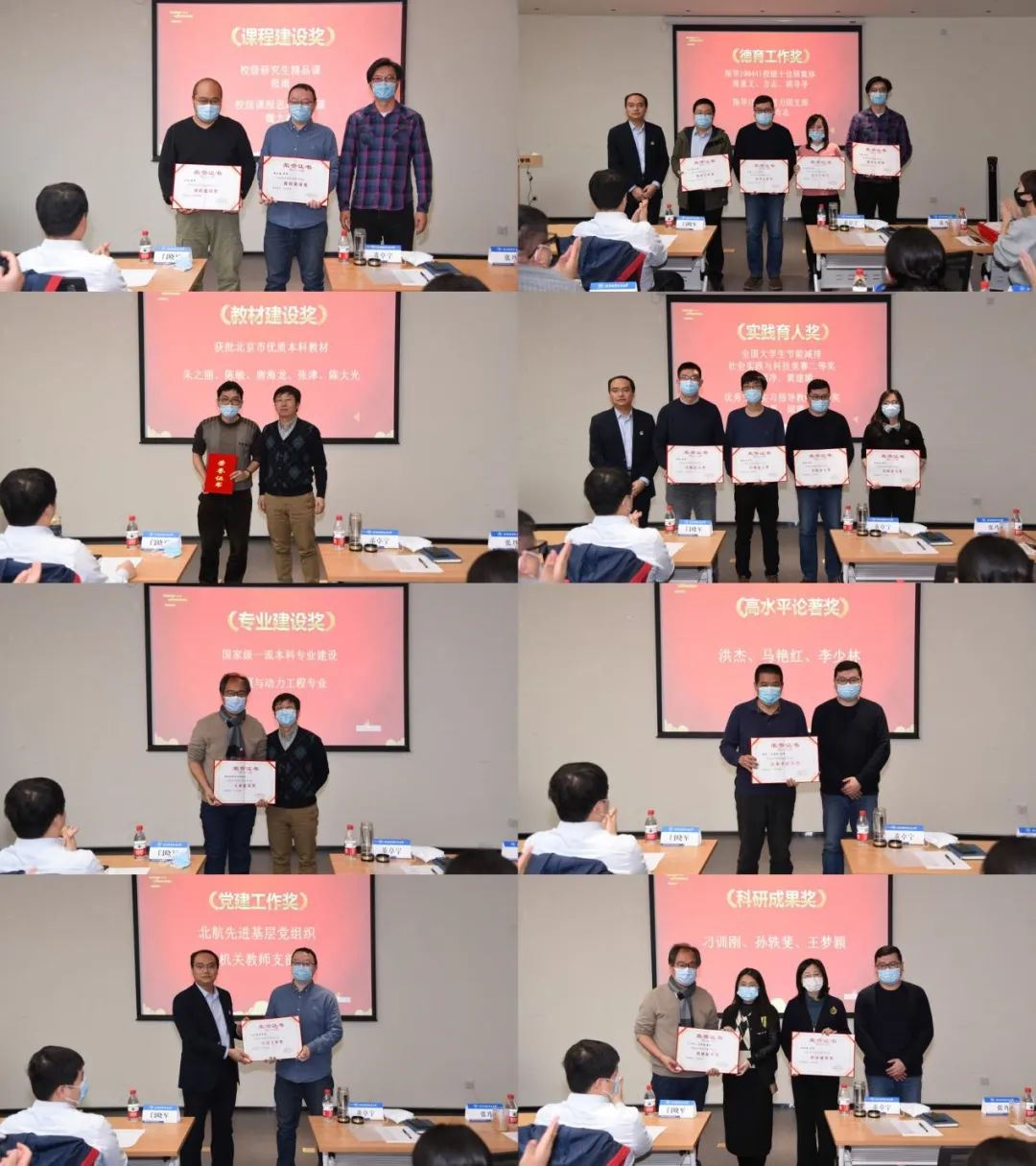 会议还对荣获北航青年教学名师、校级研究生精品课、校级课程思政示范课、北京市优质本科教材、一流本科建设专业、北航先进基层党组织、学院德育工作奖、实践育人奖、高水平论著奖、国家级人才奖、平台建设奖、科研成果奖等奖项的师生进行了表彰。