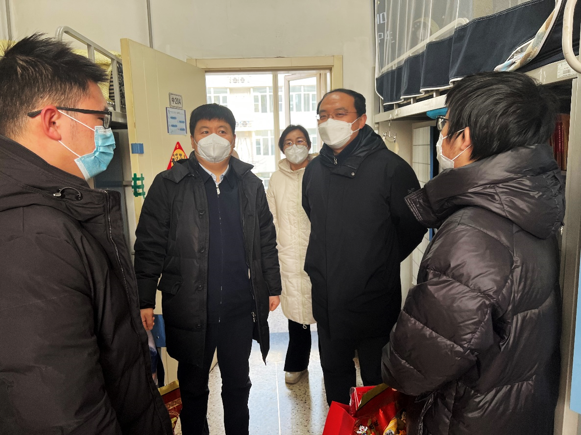 开展寒假留校新春慰问。学院院长闫晓军、党委书记董卓宁、党委副书记方志、团委书记李天韵前往学生宿舍慰问春节留校学生,与学生们亲切交流、座谈,询问留校学生的学业生活情况,并送去春节慰问品。