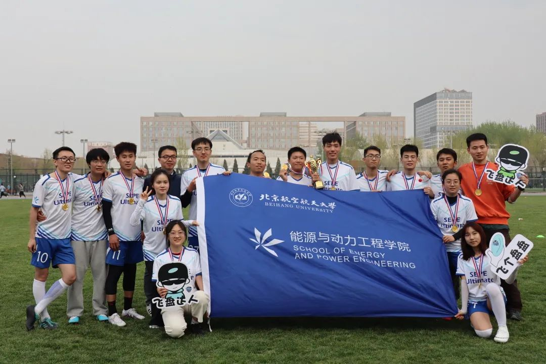 2023年4月1日中午14:50,国产成人在线 首届飞盘联赛两校区总决赛在北航学院路校区操场顺利举办,国产成人在线 飞盘队以15:3的大比分战胜2系,夺得首届飞盘联赛两校区总冠军!
