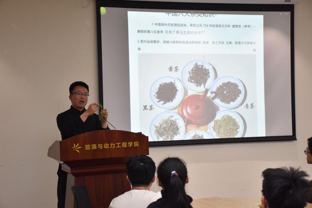 张老师首先从神农尝百草讲起,向我们介绍了茶的起源,又谈到“茶圣”陆羽的《茶经》,讲解了茶艺的基本知识。如茶具的选择最好贴近自然,多选陶土竹器,无需金银等豪华装饰。
