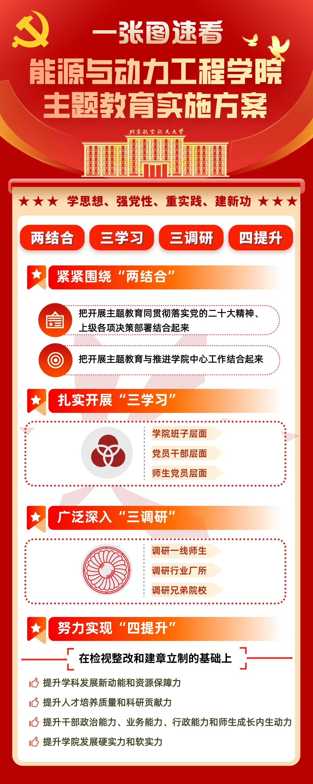 党委坚持学思用贯通、知信行统一,紧紧围绕“两结合”,扎实开展“三学习”,广泛深入“三调研”,努力实现“四提升”。学院干部师生通过理论学习中心组会议、“学习日”、“三会一课”等形式,开展了丰富多样的理论学习和调查研究,努力把习近平新时代中国特色社会主义思想转化为坚定理想、锤炼党性和指导实践、推动工作的强大力量。