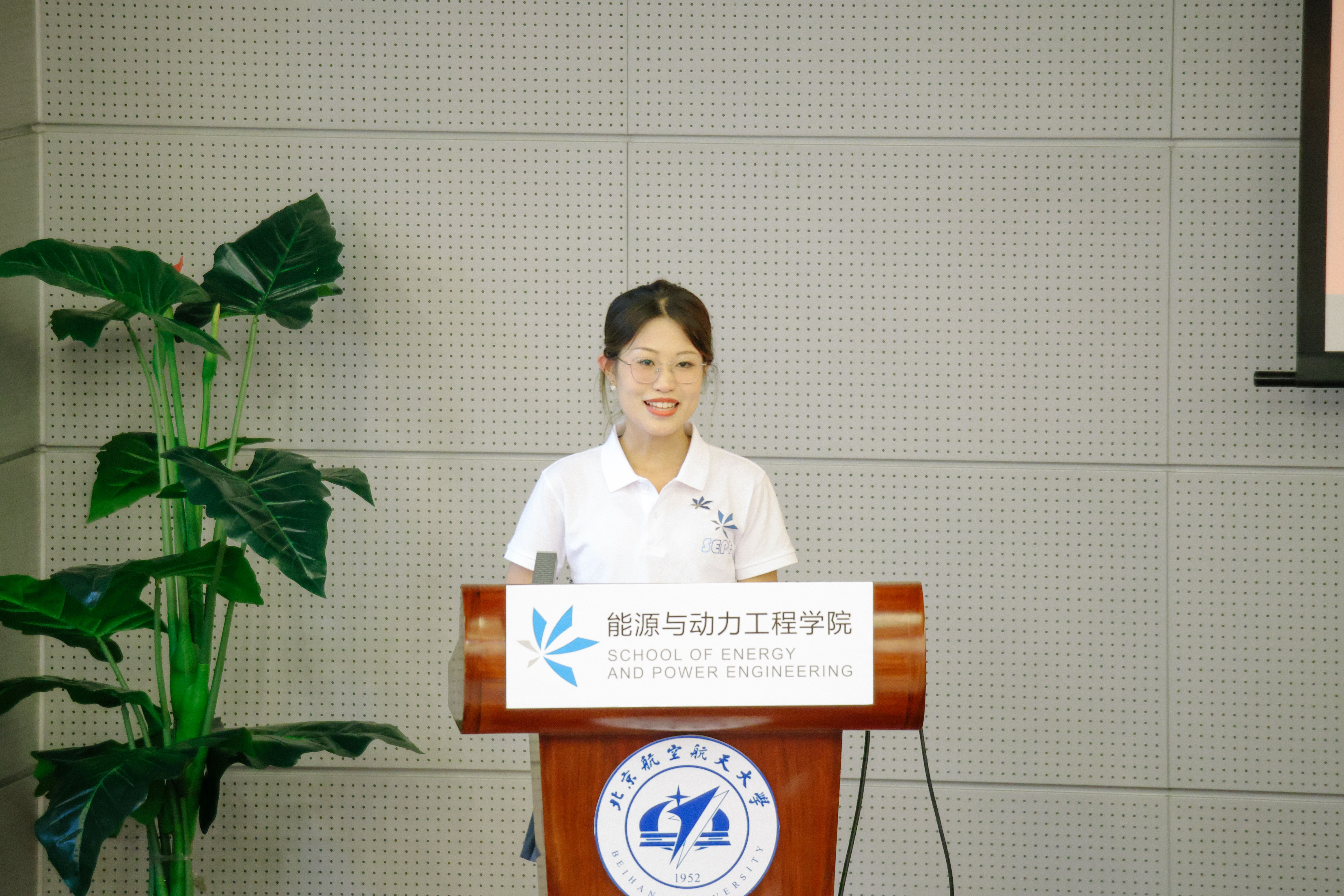 肩负使命,素履以往,研究生新生代表、热能工程系硕士胡晓雨同学发表感言,号召同学们肩负起发展国家航空航天科技的使命。