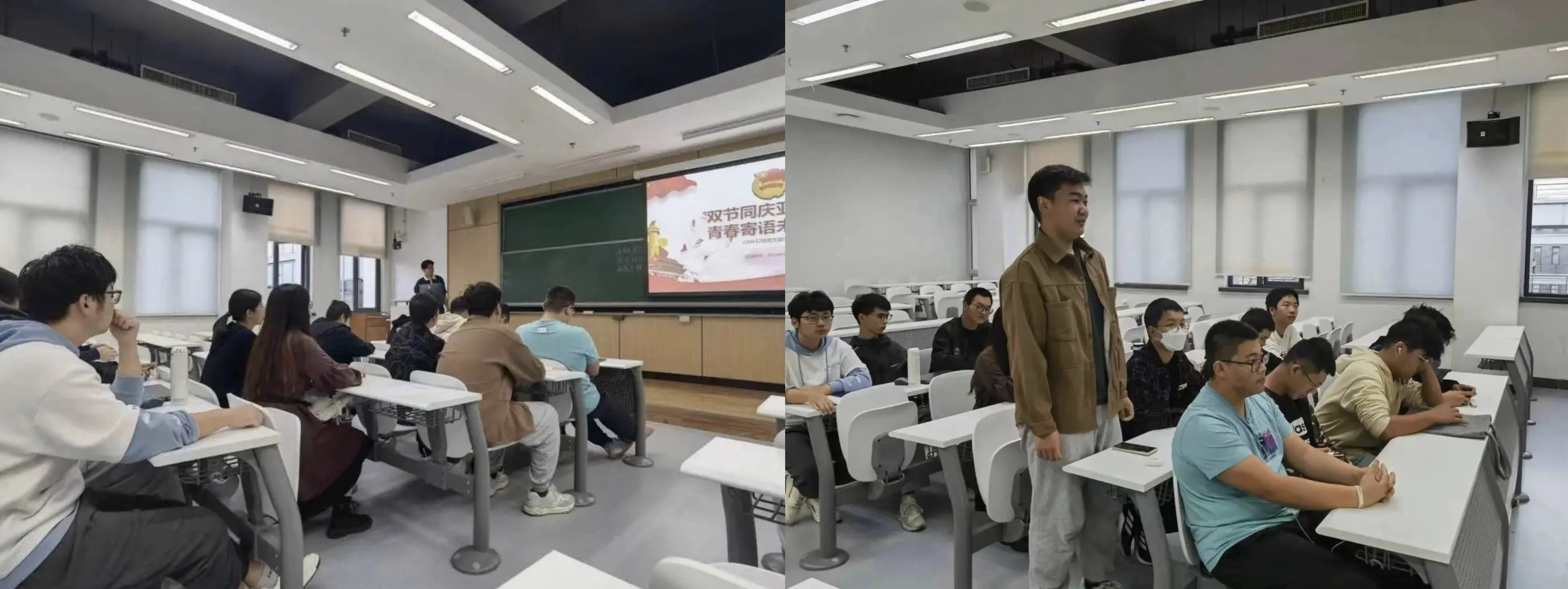 210431团支部通过观看双节祝福视频与亚运视频,展开学习了相关党的理论和党的历史,同时回顾了开国大典上毛主席的庄严宣告,通过一系列活动进行爱国主义教育学习。