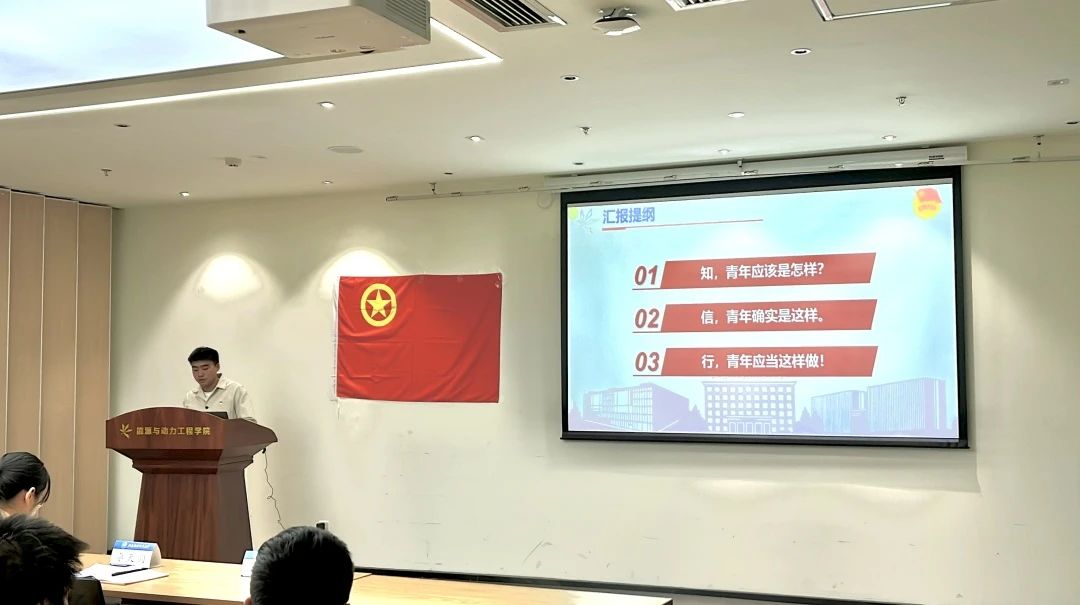 优秀团员张迪以自己在理论学习、学生工作等方面的成长为例,号召大家紧跟时代步伐,加强学习意识,提高思想理论水平,珍惜青年大学习、团日学习等集体学习机会;积极承担责任,主动参与到服务活动中,脚踏实地做事,争做模范先锋。