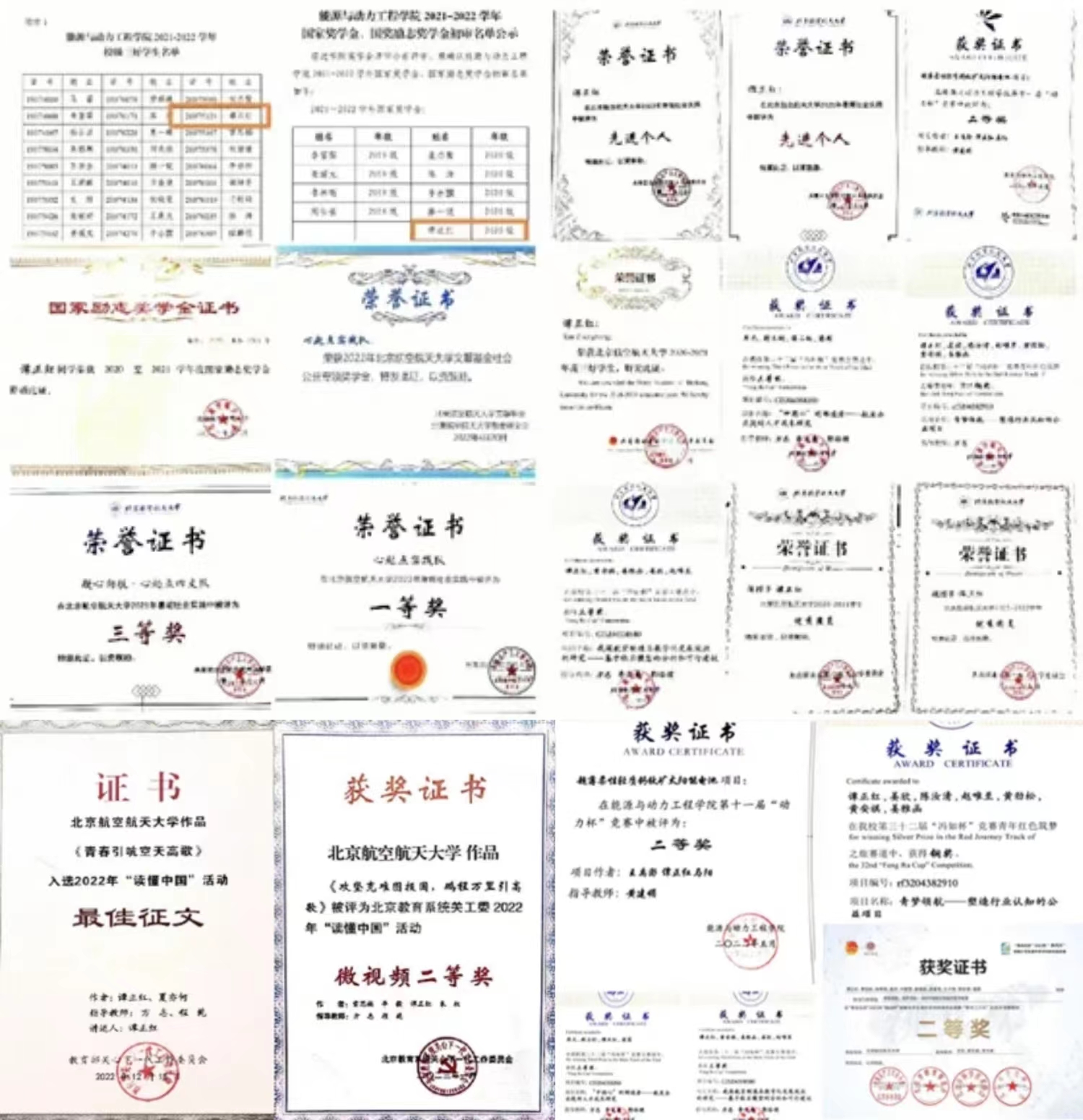 只问耕耘,丰盛自来。为进一步培养学术思维和科研能力,他深入科技实践,参与钙钛矿太阳能电池、旋流火焰稳定性等项目研究,获得冯如杯主赛道三等奖、动力杯二等奖等荣誉。