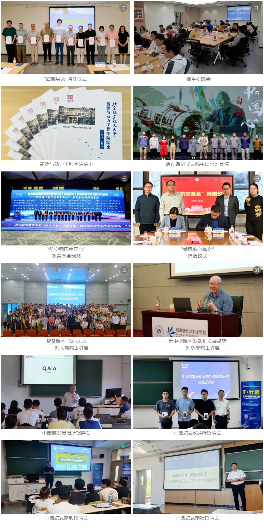 学院谋划构建有组织的科研合作、硕博士联合培养、教师企业挂职“三位一体”校企合作新模式。多次与中国航发动力所研究深度交流洽谈,共同研究推进卓越工程师联合培养、青年教师挂职、联合举办学术会议等7项事项。学院与航发集团、黎明公司、黎阳公司、成发公司等四家单位共建校企俱乐部,在校内举办总师讲座、“相约黎阳”“心动成发”等文体活动,到院所开展校友沙龙、体育竞技、参观交流,促进学生从校友成长经历了解行业动态和发展前景。