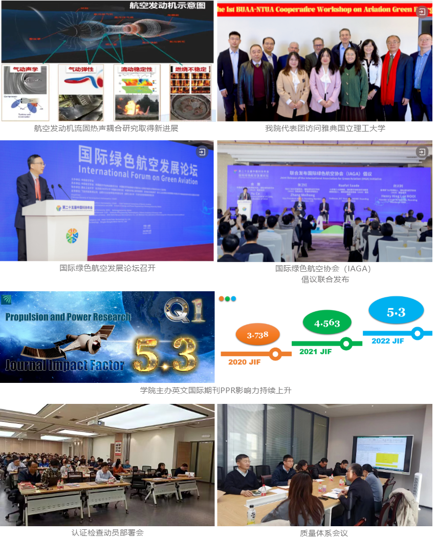 学院深入实施“敢为”行动计划,强化有组织的科研,科研实力稳步提升。牵头获批9项国家级重大/重点项目,获批国家自然科学基金数量创近三年新高。年度科研到款连续五年保持较高水平。国际交流稳步复苏,教职工及学生因公出国(境)交流近120人次。“一带一路”国际科研合作取得重要进展,与雅典国立理工大学筹划建立院系战略合作协议、共建氢能联合实验室、举办双边学术论坛。联合主办国际绿色航空发展论坛等有影响力的国际学术会议,参与发起国际绿色航空学会(IAGA)。学院主办的英文期刊《Propulsion and Power Research》与中文期刊《航空动力学报》分别位列国外、国内本领域顶级期刊。学院科研管理服务水平进一步提升,梳理优化了工作体系、制度、流程,为科研发展提供坚强保障。
