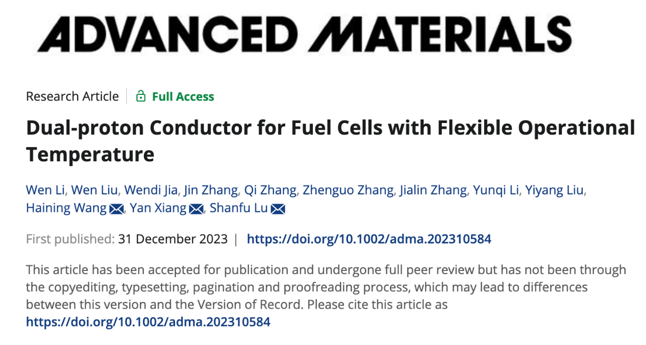 “Dual-proton Conductor for Fuel Cells with Flexible Operational Temperature”
