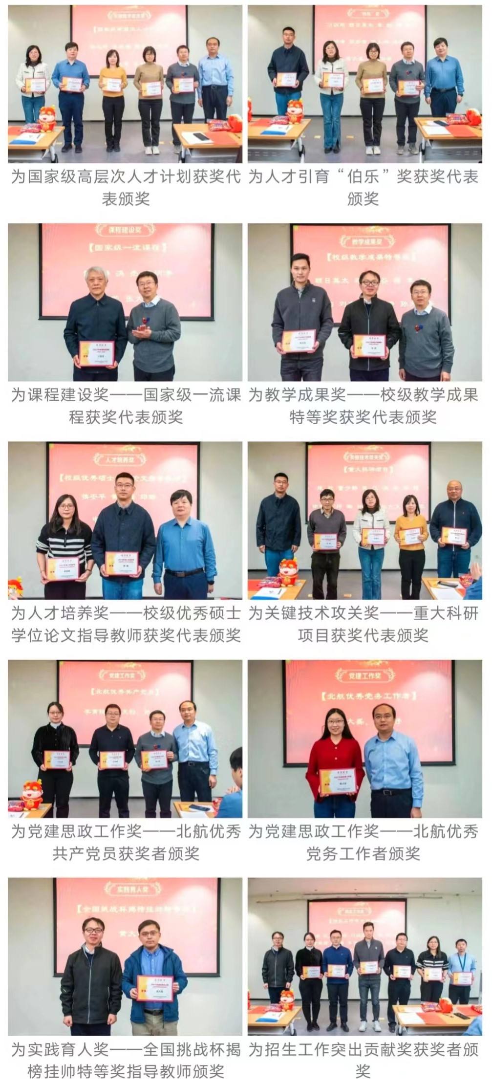 董卓宁宣读了学院2023年各项工作做出突出贡献的教职工名单。学院领导分别为获得高层次人才奖、人才引育“伯乐”奖、课程建设奖、教学成果奖、教学比赛奖、人才培养奖、关键技术攻关奖、党建思政工作奖、实践育人奖、招生工作奖等获奖教职工颁奖。