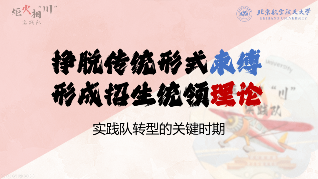 炬火相“川”实践队队长张峻彩分享工作思路。本次寒假实践活动将作为实践队转型的起点,结合过往实践经验,与本次实践遇到的问题继续完善实践模式。炬火相“川”实践队的发展不能止步于传统形式上的宣讲招生,而是要从实践者变为引路人,从形式上做出根本改变,为北航在四川招生乃至全国的招生模式提供新的思路,实践的过程亦是他们探索的过程。