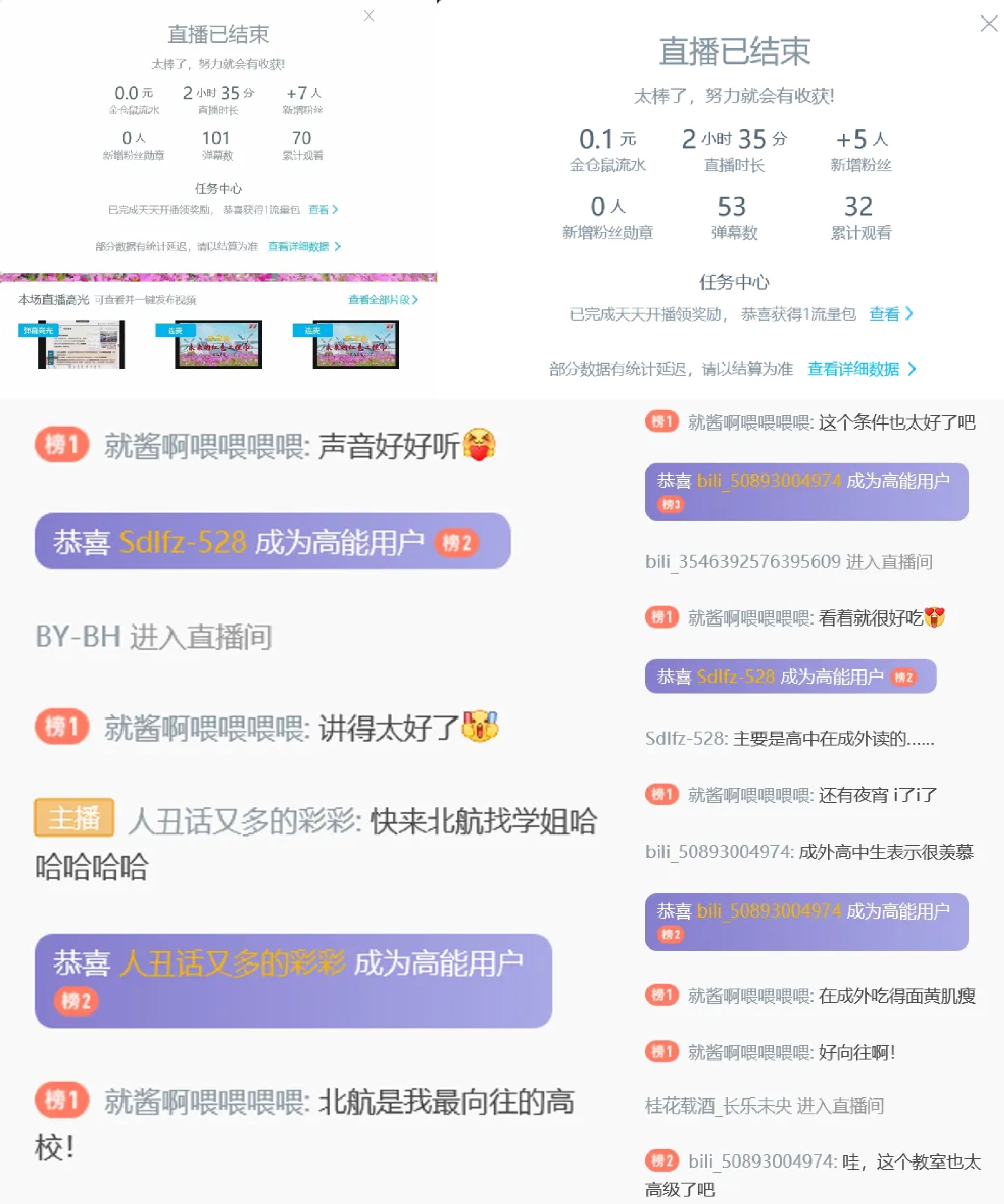与此同时,我们将宣讲的平台与媒介进一步拓展。为了解决腾讯会议时长限制、操作繁琐等相关问题,我们使用了B站作为了两次四图识北航直播的平台。由于B站具有网页端,无须登录也可观看直播,弹幕系统更加完善等特性,我们的观看人数、效果以及答疑效果都得到大幅提升。