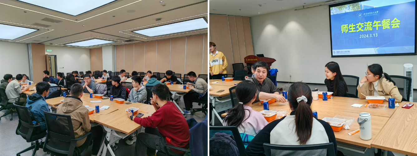 午餐会上,老师向同学们介绍了学院发展历史、学科专业方向、行业趋势及未来就业前景等,对于同学们提出的关于专业培养方案、科创项目、研究方向等方面的提问进行详细解答。老师们还分享了个人成长经历、科研经历和教学心得,让同学们受益匪浅。现场氛围融洽,师生畅所欲言,同学们在轻松愉快的环境中加深了对学院的了解。