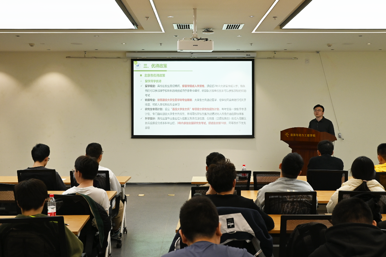 在沙河主楼F703-1召开2024年大学生应征入伍宣讲动员会。学院专职辅导员张大伟,毕业班辅导员杨璐瑜、邹逸凡,退役大学生士兵张振威、黄靖安及学院各年级学生参与本次会议。
