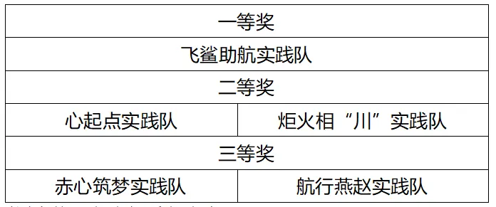 两支实践队获评社会实践校级奖项:飞鲨助航实践队荣获校级一等奖,心起点实践队荣获校级二等奖、“科技领航行动”实践品牌“最佳实践队伍”。