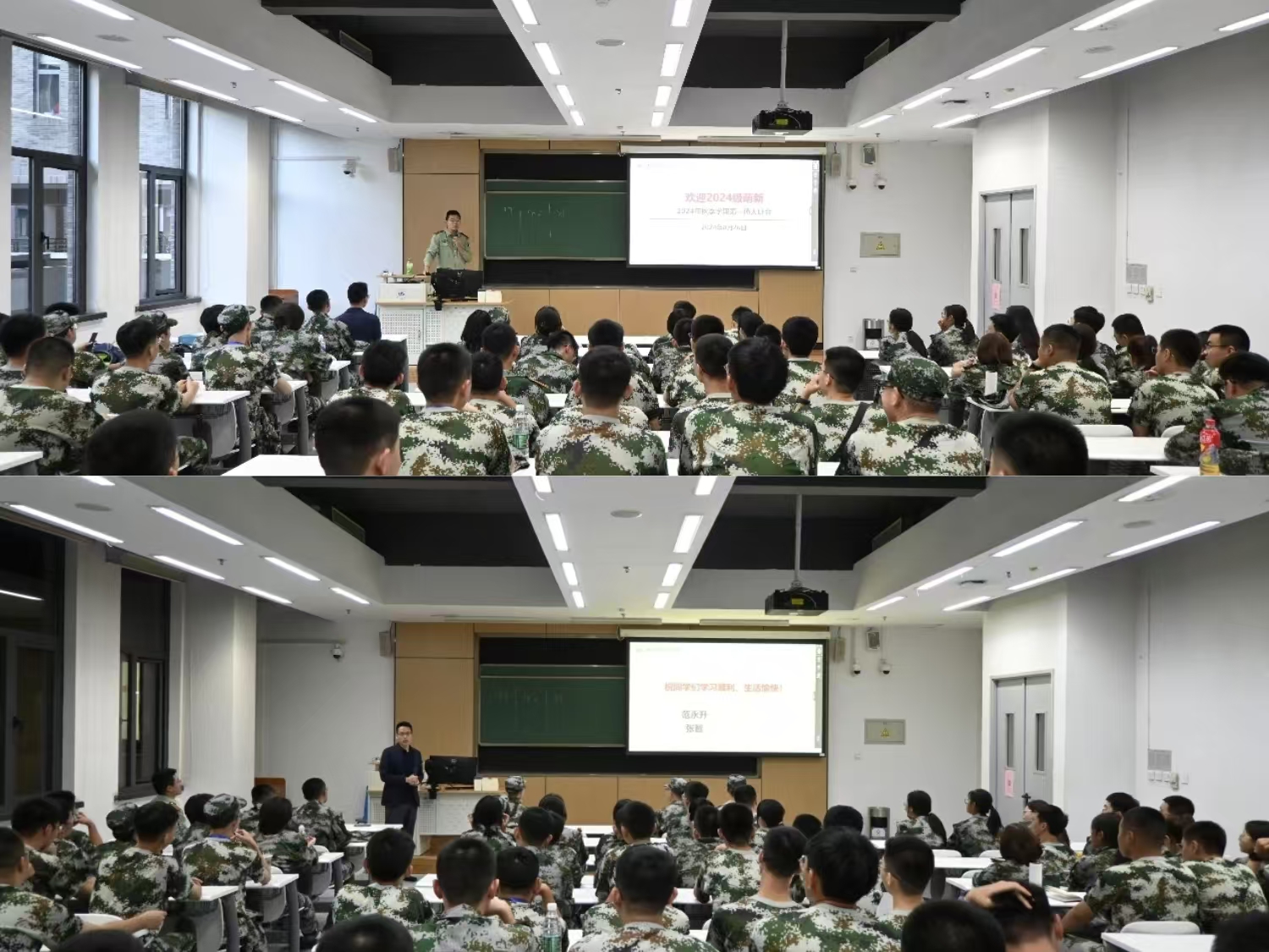 8月26日晚,新生第一次大班会,带班辅导员范永升、张智介绍学校、学院整体情况,进行新生适应教育、入学安全教育,讲解近期学习生活安排,一同与同学们开启大学生活。
