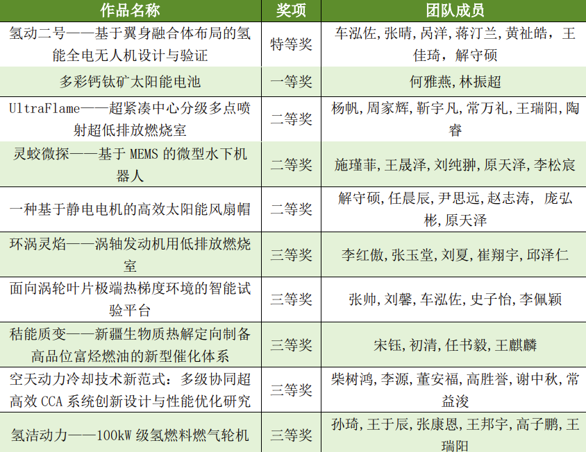 学子共有159个项目参加本届“冯如杯”的激烈角逐并斩获优异成绩。主赛道本科生制作组二等奖8项、三等奖12项,主赛道本科生论文组一等奖1项、二等奖4项、三等奖8项,主赛道研究生制作组三等奖2项,红旅赛道铜奖1项,创意赛道一等奖1项、二等奖3项、三等奖4项。