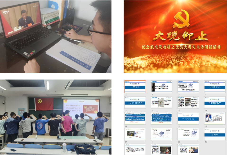 支部积极响应总书记“青年创造美好明天”的号召,勉励团支部成员刻苦学习、积极投身中国航空发动机事业,开展《大观仰止》诗朗诵活动,传承吴大观先生等老一辈航发人追求真理的科学精神,笃行实干的奋斗精神,空天报国的忠贞信仰。将思想引领融入活动之中,充分调动了团支部成员的积极性,团支部成员坚定理想信念,立志开拓创新,努力践行“空天报国、敢为人先”的庄严承诺,为祖国航空航天事业不懈奋斗。