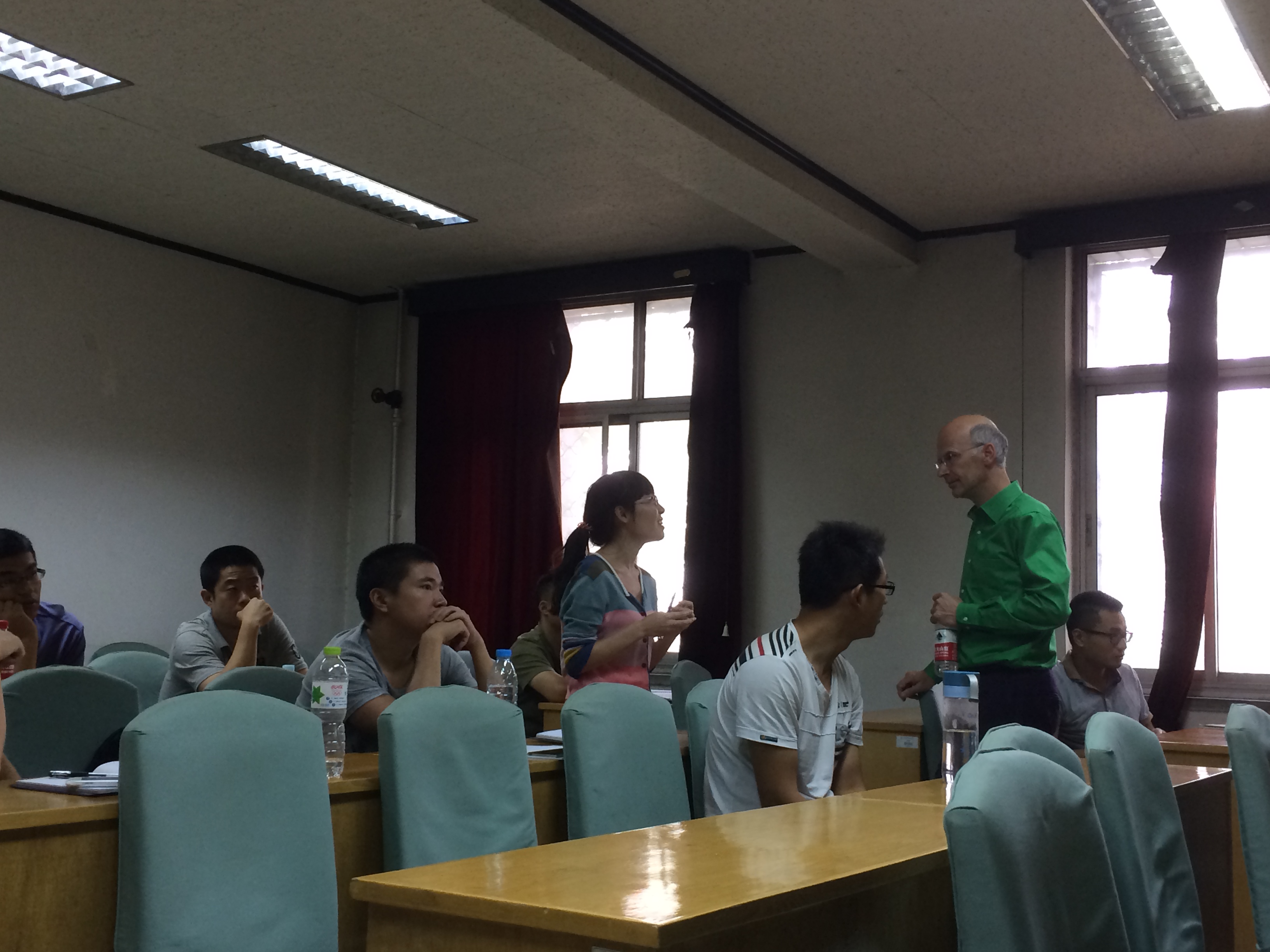 讲座从一个有趣的实验开始,Peter教授拿出一瓶重3N的矿泉水,将其举在手掌上方约30cm处并放手来体会1焦耳能量的大小,通过这种方式让大家直观体会到能量是什么。紧接着,Peter教授介绍了能源的概念,理论与实际结合,以创造性的思维方式为同学的研究提供新方向。之后,Peter教授展示了太阳能驱动touching the void的发明,使大家眼前一亮。最后他播放了一段视频展示其关于先进飞行器的设计成果。在每段话题之后,Peter教授均与同学们进行良好的互动交流,对同学们的问题进行具体解答,为同学们的研究方向提出中肯的意见。