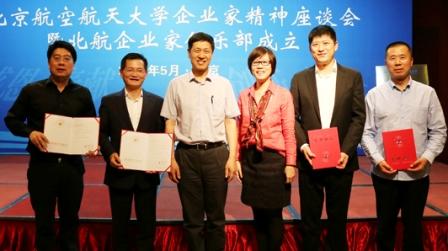 2015年5月13日下午,北航企业家精神座谈会暨企业家俱乐部成立仪式在唯实国际文化交流中心举行。北航企业家俱乐部的正式成立,是新时期下学校校友工作的一种全新探索,必将增进校友与母校的情谊,有力推动各校友企业之间、企业与学校之间实现资源共享、优势互补,促进共同发展,以北航的优良传统引导中国的企业家承担起社会责任,让事业有成的校友有更多机会回报母校的辛勤培育。
